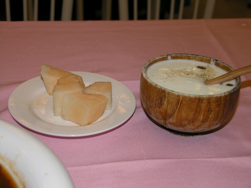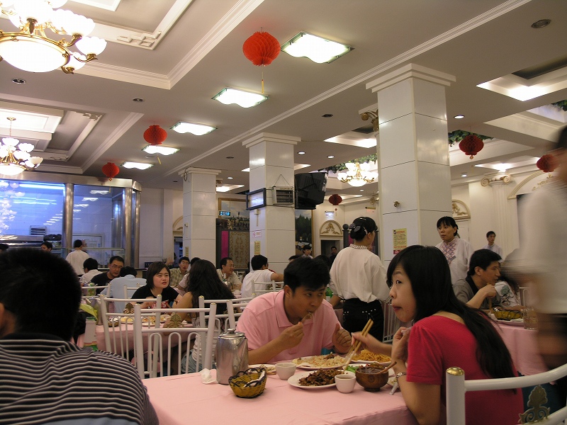 ・北京動物園にてパンダだけを見る 朝食時間だったら“動くパンダが見られる”ということで,ホテル出発は朝7:00です. 行きは地下鉄2号線の西直門駅からタクシーを利用しました.20元くらいでした. 今回のタクシーは運転席に仕切付きでしたが,これはドライバーの護身用でしょうかね. 厳かな北京動物園の正門. パンダハウスはこちら. この写真だけだとアレですけど,確かにスゲー動いてましたよ,パンダ. 流し目が決まっています. ※後日,マニアのためのパンダ特集を組む予定なので,写真と「スゲー動いている様子の動画」をそのときにたくさん載せる予定 パンダハウス内の売店で,私用に“パンダが拳法のいろいろな型を決めているTシャツ”をネタとして買いました. それと甥っ子や姪っ子へのお土産として,キーホルダーを買いました. (こちらは特に珍しくもないので,ここでは写真省略) そのキーホルダーですけど,カワイイ感じなのはパンダとかけ離れすぎたマンガ的顔かたちでひどいし,逆に顔かたちがリアルすぎると全然かわいくないし...という両極端な商品しかなくて,選ぶのにちょっと困りました. ・“大粥鍋 北京動物園隣店(勝手にそう名付けました)”にて朝食 パンダハウスだけを見て北京動物園を出て,ようやく朝食です. 私が注文したメニューは,なんと大きな土鍋で来てしまいました. お茶には氷砂糖を入れて召し上がれ. どおりでメニューの中でも値段がやや高めのハズだよ,こりゃ.(^-^;;) 店の手前の両隣にはお土産屋などがあったので,雰囲気は日本的な「行楽地そばのお食事処は高くてマズイ」というものを醸し出しておりましたが,さにあらず. 奥まった入り口から店内に入ると朝イチからちゃんとキレイだし,お粥のメニューも豊富で味もまずまずでした. 大粥鍋というのはチェーン店のようですが,この支店は店構えでちょっと損をしていますね. 北京動物園からの帰りは,動物園の向かいビル内にあるバスセンターらしきところから西直門までバス移動でした.