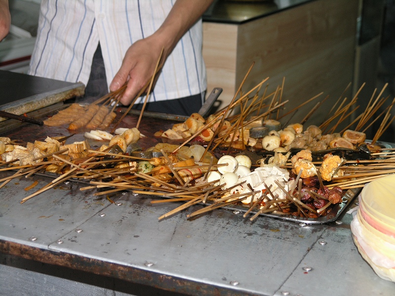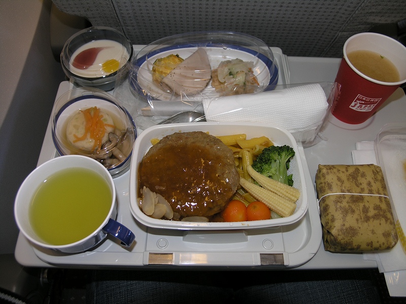 空港では往復とも第3ターミナルを利用したのですが,両替所は3カ所確認できました. ①入国手続き終了後の,ロビーへの出口の直前 ②出口からロビーに出たところの右手 ③出国フロアの,国内線/国際線へ進む導線のすぐ手前 ですが,為替レートはどこも同じ模様です. ただし手数料が違います.手数料は両替1回あたりについて掛かりますが, ①が50元,②が70元,③が30元です. ①は私が実際に両替しました.②と③は一緒にツアーに参加の後に1日延泊して,私より先に帰った韓国マニア仲間が実際に両替しました. ということで,もっともお得な両替を目指す方は,入国後にすぐにロビーへ出て,1階上の出国フロアの両替所を利用なさってください. ①と③で40元の差がありますので,B級グルメ3食での1日分の食費になりますよ. それでは写真を交えた旅の様子をば. 利用したのはJALと中国南方航空のコードシェア便ですが,我々は南方航空での予約なので,JALのマイレージが付かないのはもちろん,南方航空が参加しているスカイチームとしてのマイレージも付かないとのことでした.(^-^;;) 中国行きの飛行機での機窓(って言うのかな?)のひとコマと機内食のご紹介. 離陸してから「もうすぐ富士山見えるよなあ」と思って待ち構えていたのですが,なかなか見えてこないので「もしかしたら...」と思って反対側の窓に行ってみると,案の定,富士山のすぐ横を通過中でした. いつもは福岡行きとか韓国行きにしか乗らないので,飛行ルートは富士山を静岡側から見るものだとばかり思っていたのですけど,中国行きだと石川県方向に飛ぶので富士山は山梨側から見ることになるんですね.(^-^;;) 早めに気が付いてよかったです. それから機内食. ハンバーグ(肉メニュー)と川魚の中華料理(魚メニュー)があって,写真を見せられた後でどちらか選べるのですが,いったん川魚の方を選んだモノの,配膳直前でハンバーグに変えました.だって「中国路線の機内食はマズイ」と聞くんですもの...(-_-;;) だからとりあえず無難にハンバーグにしました. 味はごく普通.まあ日本発着便で日系の会社の機材だから当然なんでしょうね. 機内では韓国映画を堪能しました. まだ日本未公開の「正しく生きよう(바르게 살자)」というコメディです. 実はこの映画は邦画「遊びの時間は終わらない」が原作なんだそうで,結構面白かったですよ. 主役のチョン・ジェヨンは私の大好きな役者さんなのですけど,やっぱりいい演技をします.